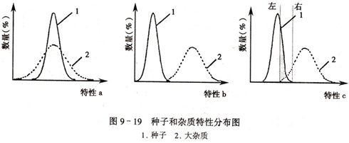 若种子的临界速度、宽度、厚度均出现(第1图)的分布状况,应借助其他物理特性(密度、光、电、摩擦等)。对于(第3图),种子和杂质分离不完全,应采用多种种子加工机械构成的成套设备