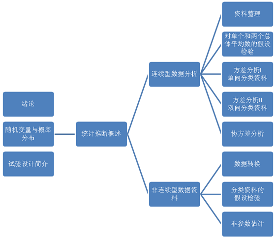 2. 掌握常用的五种试验设计方法:完全随机设计、配对设计、随机区组设计、双向随机区组设计-拉丁方设计、正交试验设计以及抽样调查的设计。