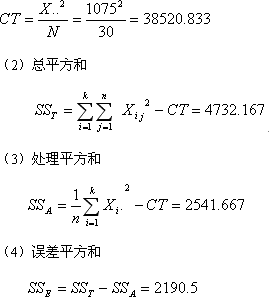 查F表可知,F0.01 (4,25) = 4.18.< FA=7.25,所以可以判定至少有两个品种间仔猪的增重有极显著差异。