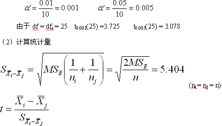 B. 如果方差分析结果差异性显著,请用Bonferroni t 检验和Duncan’s 检验对每组均数进行多重比较。 |