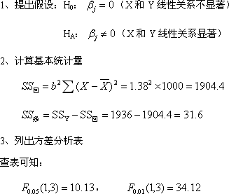 因为: ,所以拒绝H0接受HA,即X与Y的线性关系极其显著。 |