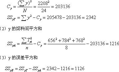 (1)校正增重的总平方和与自由度,即校正总回归平方和及自由度。