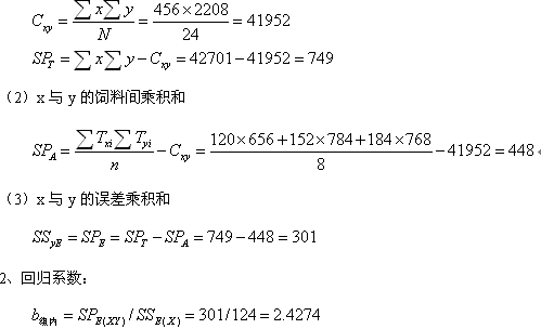 由于表中F值大于 ,因此平均日增重(y)与初生重(x)有极显著的回归关系。因此应该对平均日增重(y)进行校正,以排除初生重对平均日增重的影响。说明进行协方差分析是必要的。