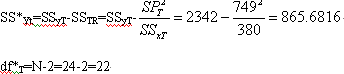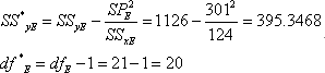 (2)校正增重的组内(误差)平方和及自由度,即组内项的离回归和及自由度