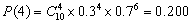 已知某种猪病的死亡率为30%,现有10头病猪,如不给予治疗,问死亡4头及死亡4头和4头以下的概率为多少?