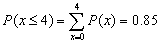 2)死亡4头和4头以下概率的计算公式为: