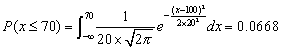 正态分布分布概率的计算(NORMDIST) -------正态曲线X=70时的纵高