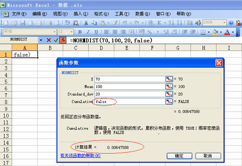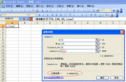 NORMDIST粘帖函数:计算累积函数