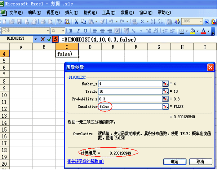 1、 BINOMDIST 计算二项式分布的概率值