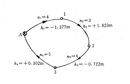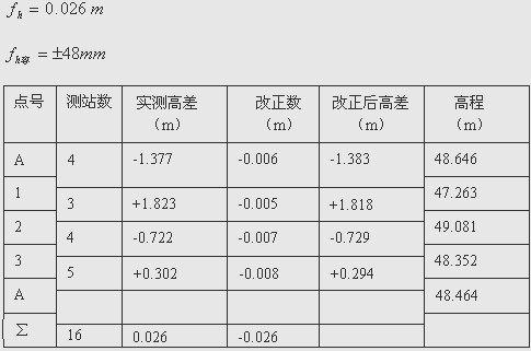 1.如下图,已知水准点A的高程 HA=48.646m,闭合水准路线各测段的测站数和高差如图所示,容许闭合差为±12 mm,试在表中计算各点的高程。