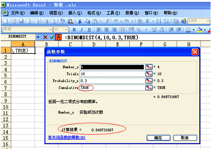 1、 BINOMDIST 计算二项式分布的概率值